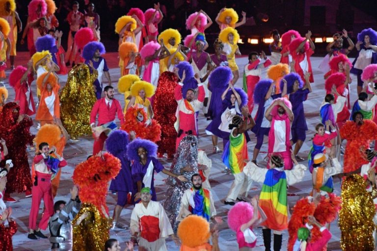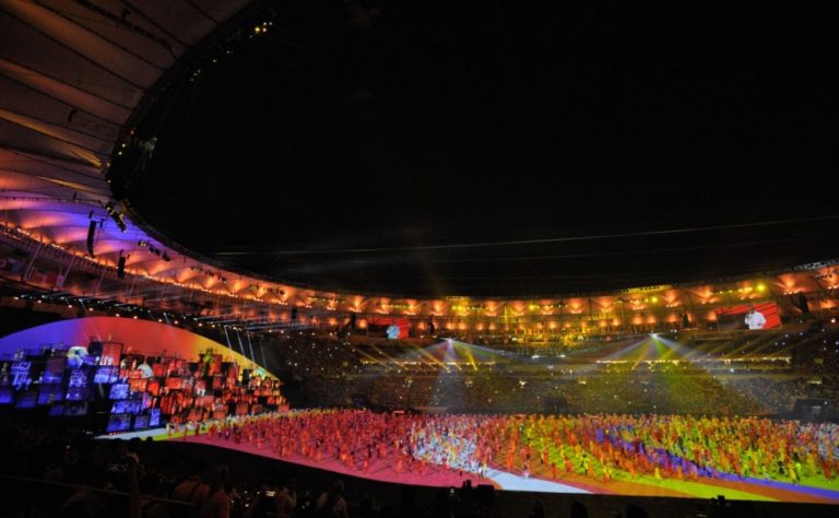 Program počas otváracieho ceremoniálu letných OH 2016 v rámci oficiálneho otvorenia Hier XXXI. olympiády v Riu de Janeiro. Rio de Janeiro, Brazília, 5. august 2016. Foto: SITA/Martin Medňanský