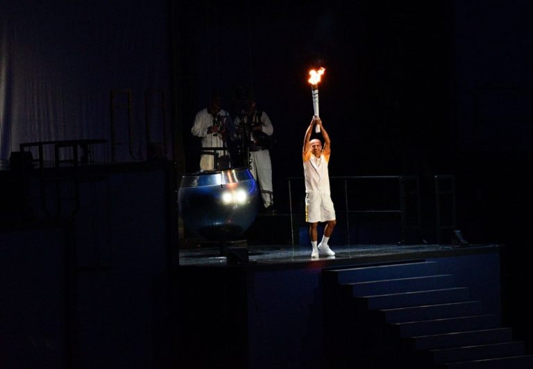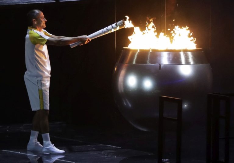 Olympijskú čašu zapálil Vanderlei de Lima. Rio de Janeiro, 5. august 2016. Foto: SITA/AP