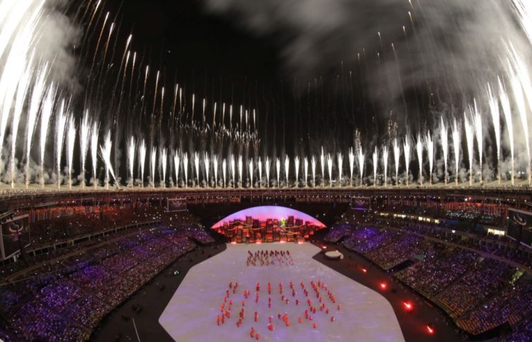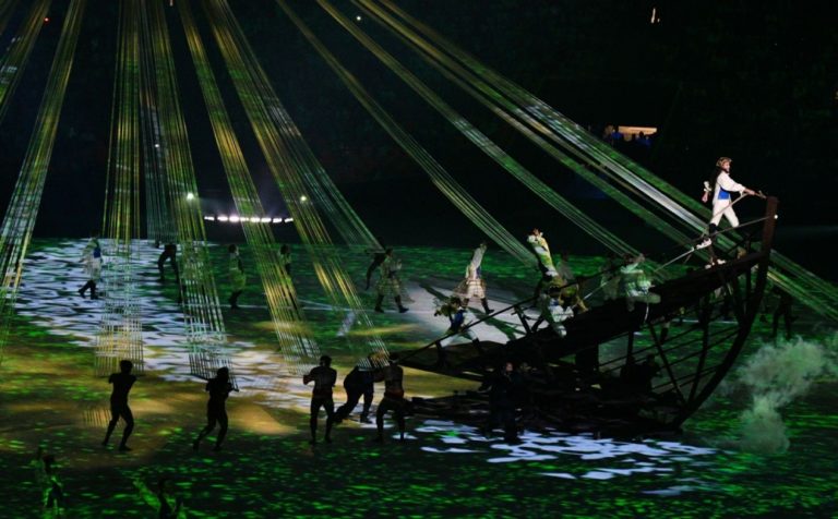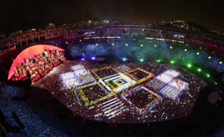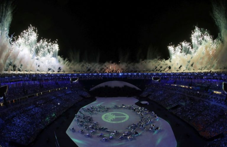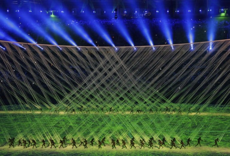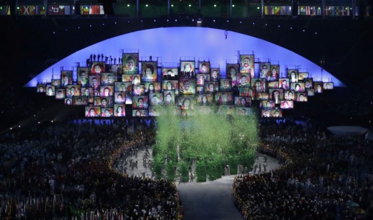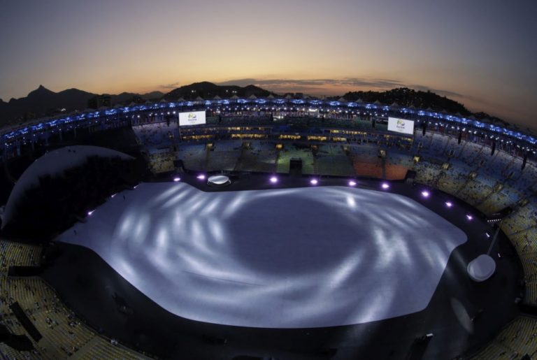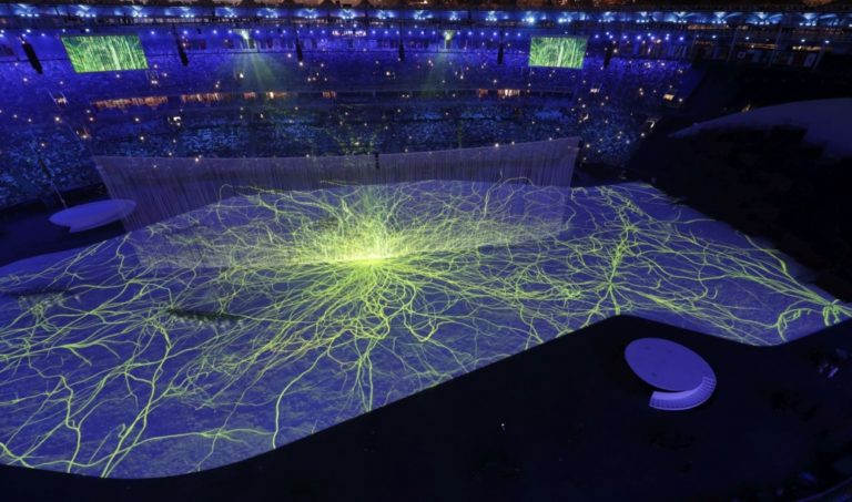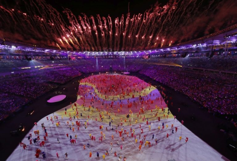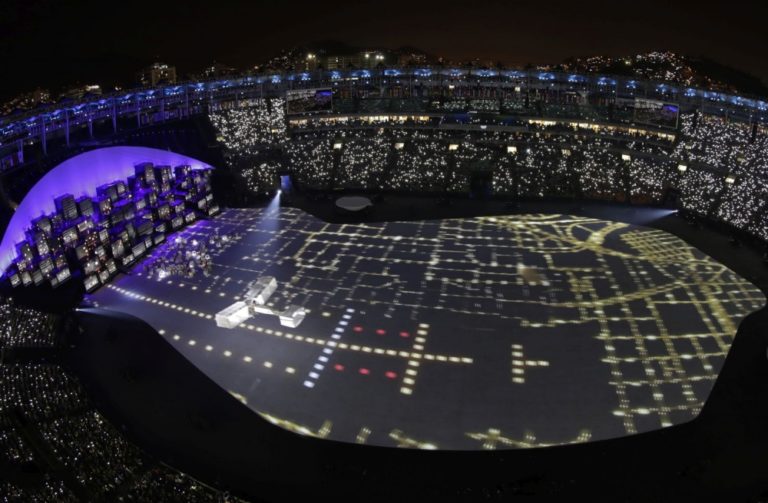 Program počas otváracieho ceremoniálu OH 2016. Rio de Janeiro, 5. august 2016. Foto: SITA/AP