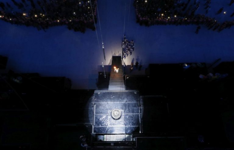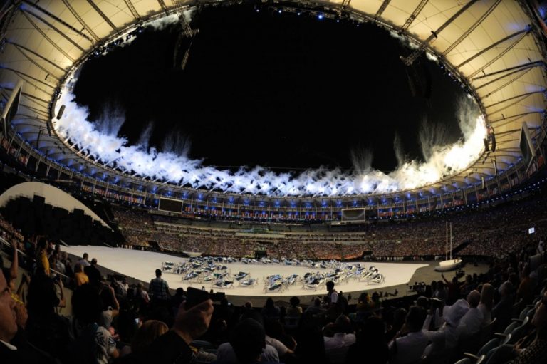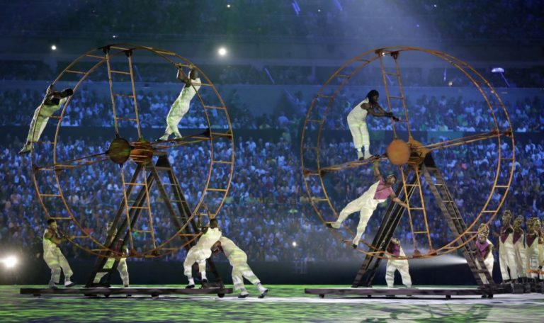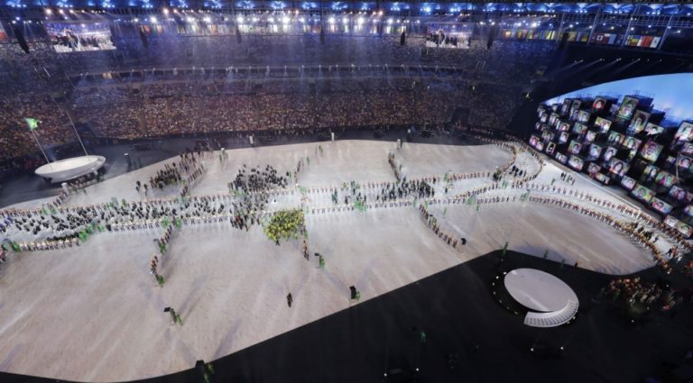 Program počas otváracieho ceremoniálu OH 2016 na štadióne Maracana. Rio de Janeiro, 5. august 2016. Foto: SITA/AP