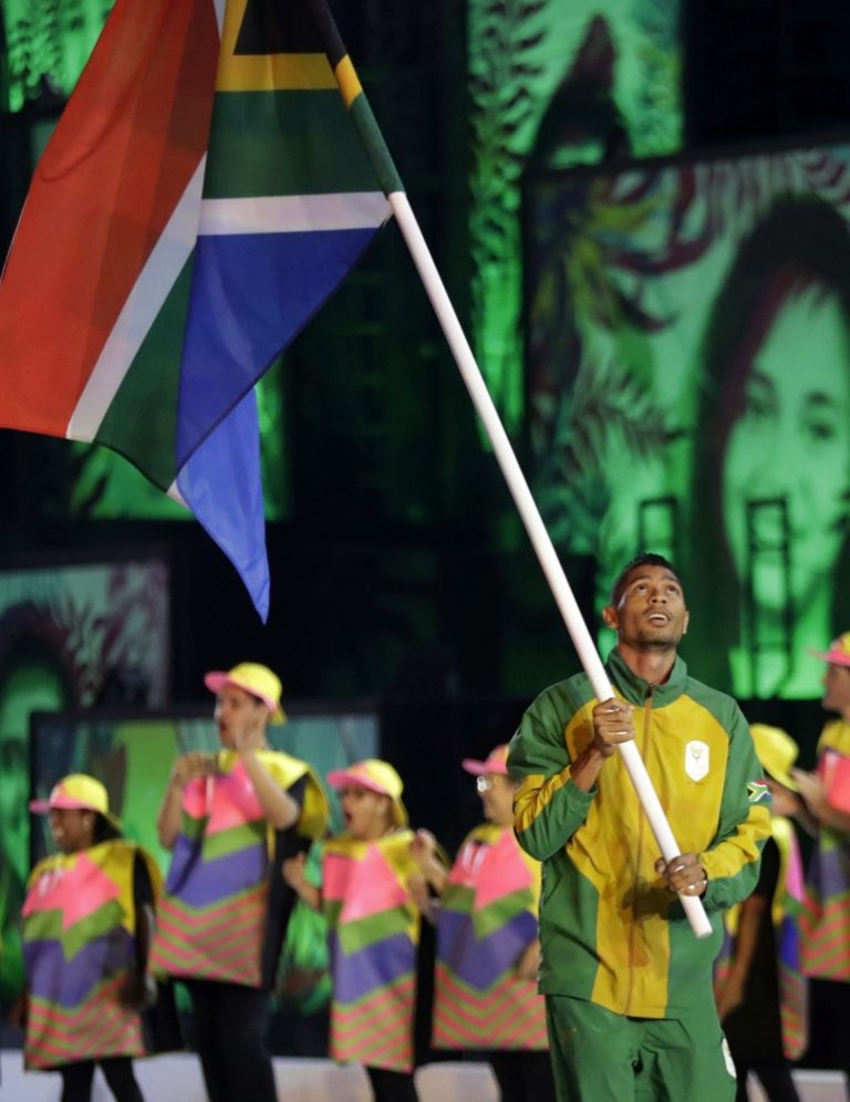 Vlajkonosič Juhoafrickej republiky Wayde van Niekerk počas otváracieho ceremoniálu OH 2016. Rio de Janeiro, 5. august 2016. Foto: SITA/AP
