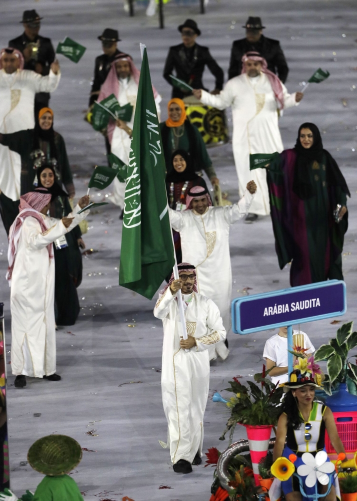 Vlajkonosič Saudskej Arábie Sulaiman Hamad počas otváracieho ceremoniálu OH 2016. Rio de Janeiro, 5. august 2016. Foto: SITA/AP