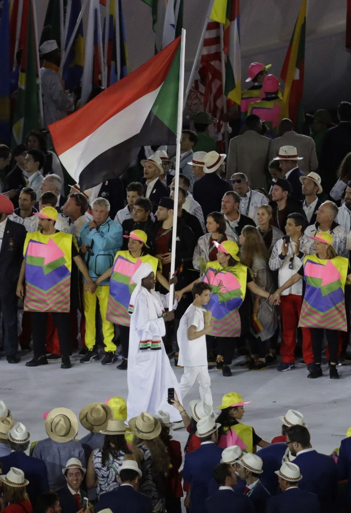 Vlajkonosič Sudánu Abdalla Yousif počas otváracieho ceremoniálu OH 2016. Rio de Janeiro, 5. august 2016. Foto: SITA/AP