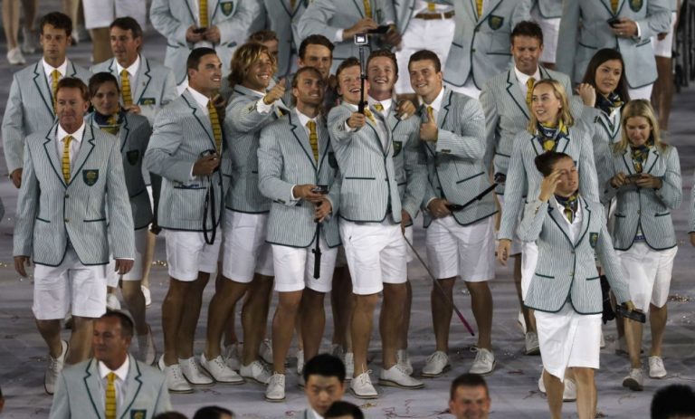 Reprezentanti Austrálie si robia selfie počas otváracieho ceremoniálu OH 2016. Rio de Janeiro, 5. august 2016. Foto: SITA/AP