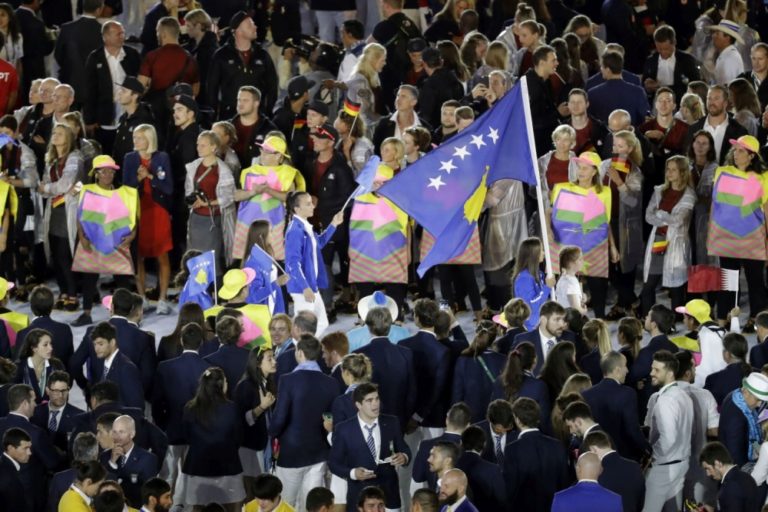 Kosovská vlajkonosička Majlinda Kelmendiová počas otváracieho ceremoniálu OH 2016. Rio de Janeiro, 5. august 2016. Foto: SITA/AP