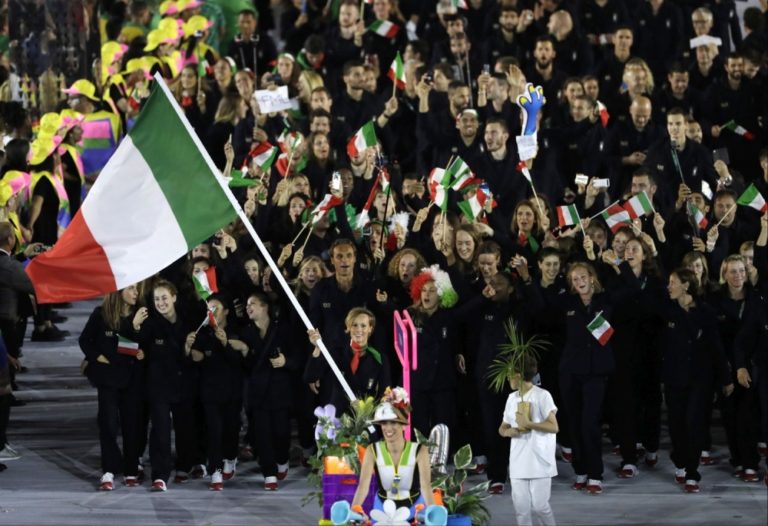 Talianska vlajkonosička Federica Pellegriniová počas otváracieho ceremoniálu OH 2016. Rio de Janeiro, 5. august 2016. Foto: SITA/AP