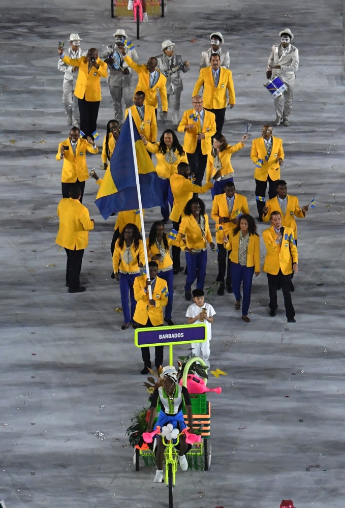 Vlajkonosič Barbadosu Ramon Gittens počas otváracieho ceremoniálu OH 2016. Rio de Janeiro, 5. august 2016. Foto: SITA/AP