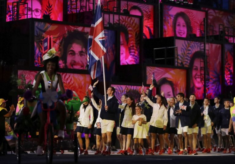 Britský vlajkonosič Andy Murray počas otváracieho ceremoniálu OH 2016. Rio de Janeiro, 5. august 2016. Foto: SITA/AP