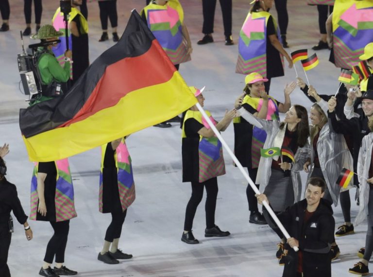 Nemecký vlajkonosič Timo Boll počas otváracieho ceremoniálu OH 2016. Rio de Janeiro, 5. august 2016. Foto: SITA/AP