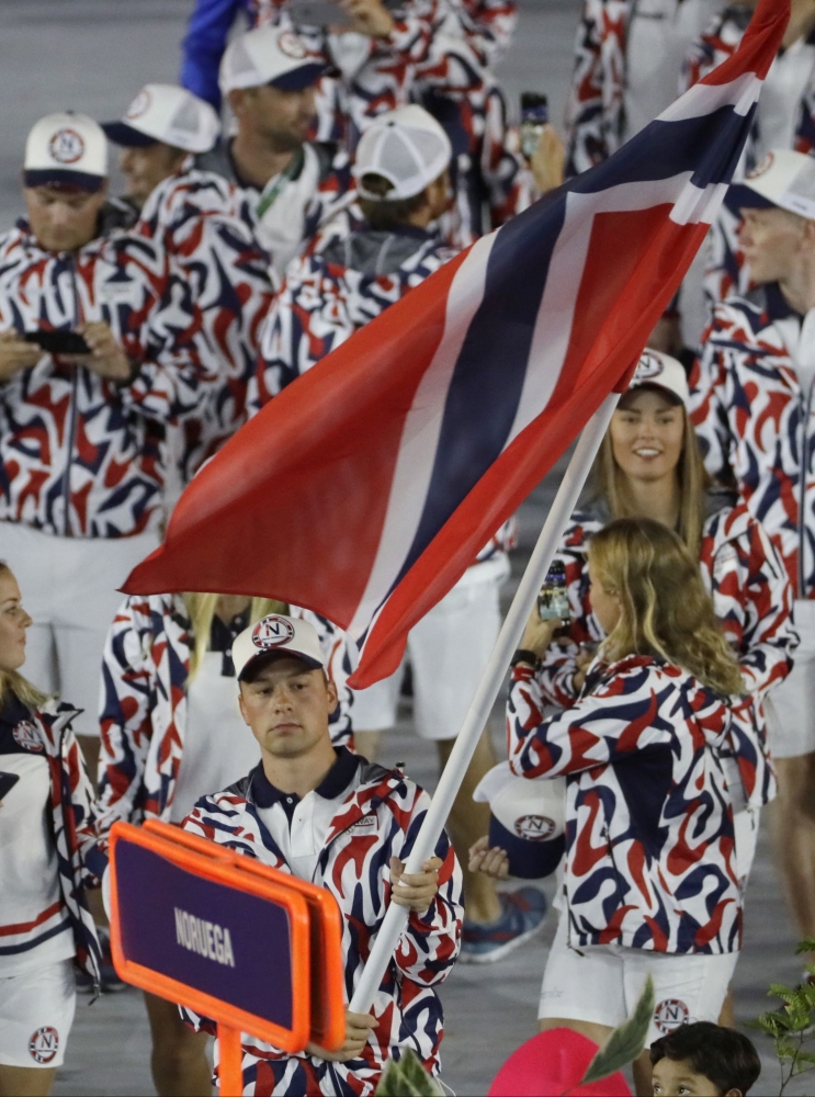 Nórsky vlajkonosič Ole Kristian Bryhn počas otváracieho ceremoniálu OH 2016. Rio de Janeiro, 5. august 2016. Foto: SITA/AP