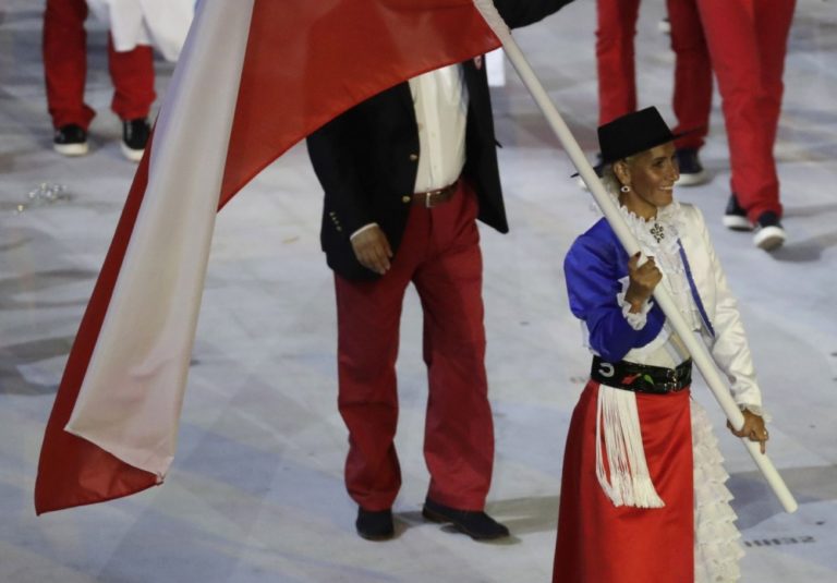 Čilská vlajkonosička Erika Oliveraová počas otváracieho ceremoniálu OH 2016. Rio de Janeiro, 5. august 2016. Foto: SITA/AP