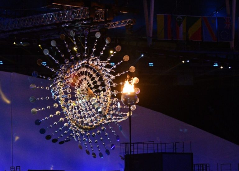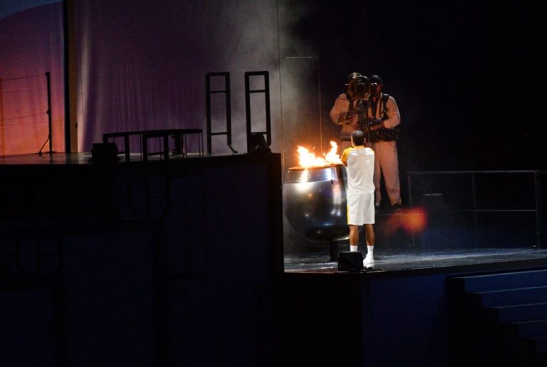 Olympijský oheň počas otváracieho ceremoniálu letných OH 2016 v rámci oficiálneho otvorenia Hier XXXI. olympiády v Riu de Janeiro. Rio de Janeiro, Brazília, 5. august 2016. Foto: SITA/Martin Medňanský