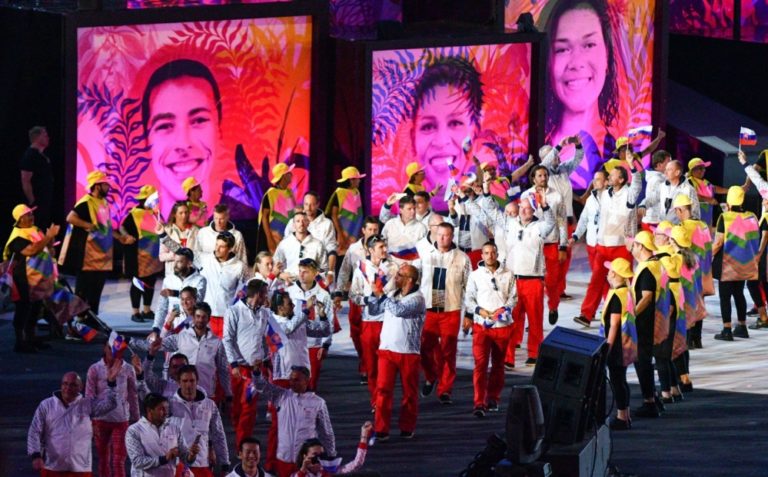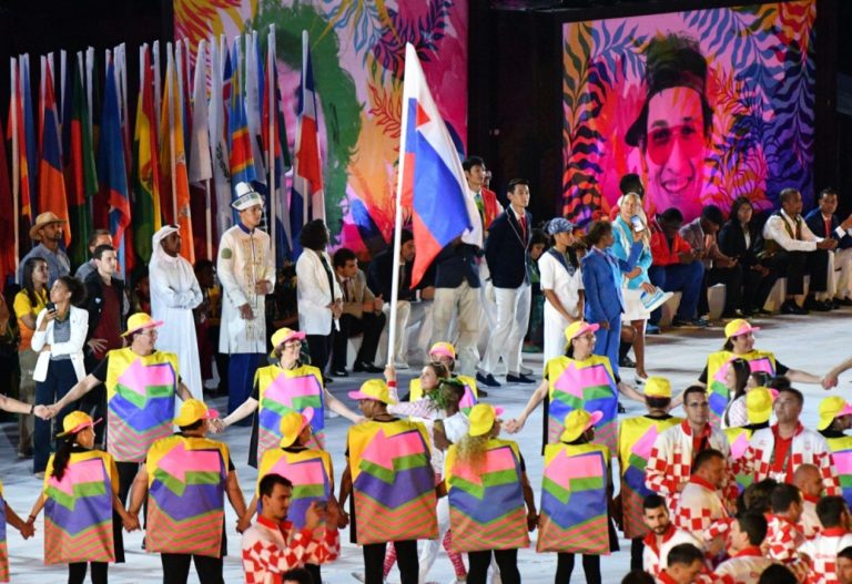 Pod olympijskou vlajkou nastúpili športovci, ktorí budú v Riu nastupovať ako nezávislí. Rio de Janeiro, 5. august 2016. Foto: SITA/AP