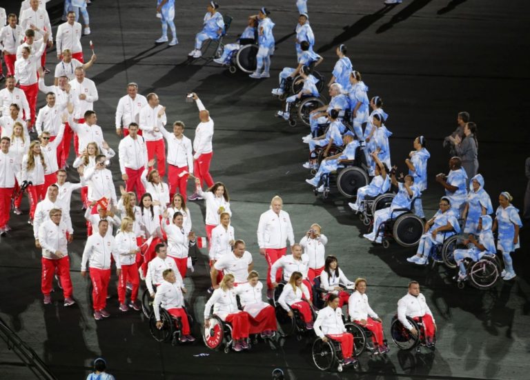 Reprezentanti Poľska počas otváracieho ceremoniálu letnej paralympiády na štadióne Maracana. Rio de Janeiro, 7. september 2016. Foto: SITA/AP