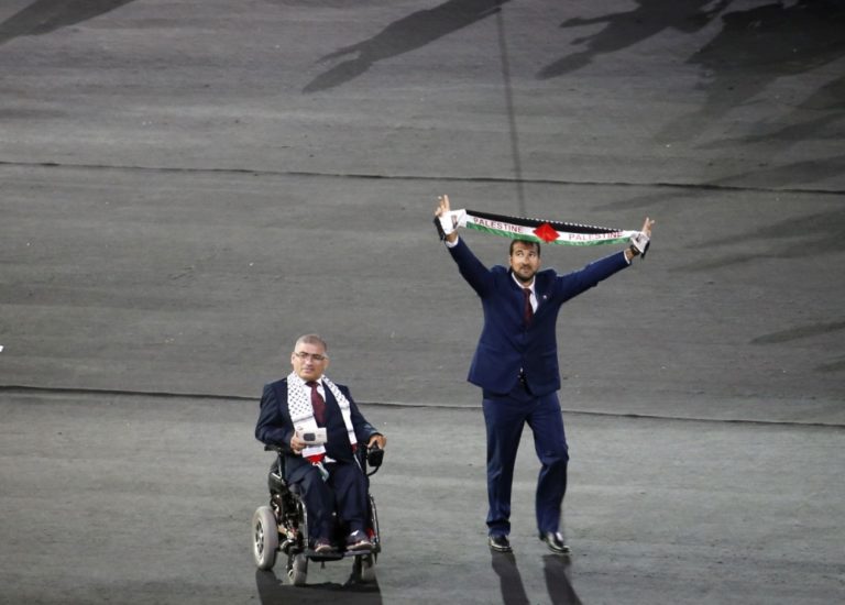 Reprezentanti Palestíny počas otváracieho ceremoniálu letnej paralympiády na štadióne Maracana. Rio de Janeiro, 7. september 2016. Foto: SITA/AP