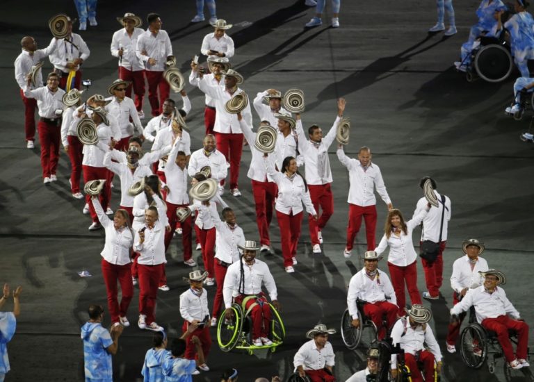 Reprezentanti Kolumbie počas otváracieho ceremoniálu letnej paralympiády na štadióne Maracana. Rio de Janeiro, 7. september 2016. Foto: SITA/AP