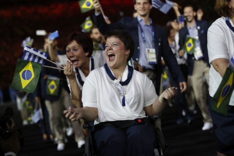 Reprezentanti Brazílie počas otváracieho ceremoniálu letnej paralympiády na štadióne Maracana. Rio de Janeiro, 7. september 2016. Foto: SITA/AP