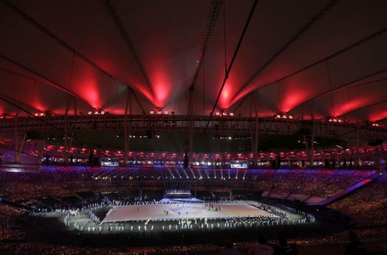 Program počas otváracieho ceremoniálu letnej paralympiády na štadióne Maracana. Rio de Janeiro, 7. september 2016. Foto: Simon Bruty/OIS/IOC via AP