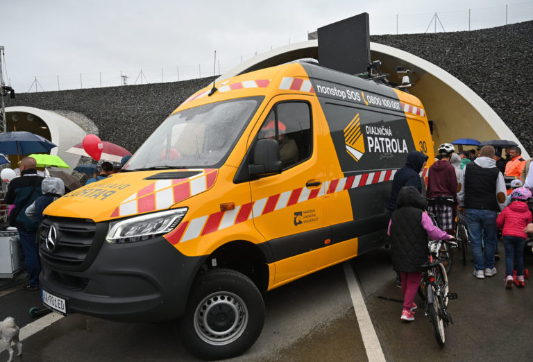 Nové vozidlo Diaľničnej patroly počas dňa otvoreného tunela Bikoš. Prešov 24. september 2023. Foto: SITA/Viktor Zamborský