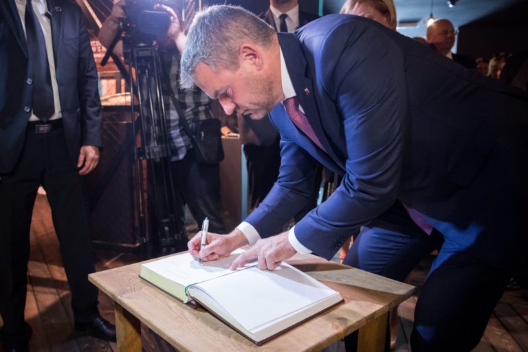 Predseda vlády SR Peter Pellegrini počas sprístupnenia novej časti expozície Múzea holokaustu v Seredi vo štvrtom zrekonštruovanom pôvodnom baraku. Sereď, 7. september 2018. Foto: SITA/Diana Černáková