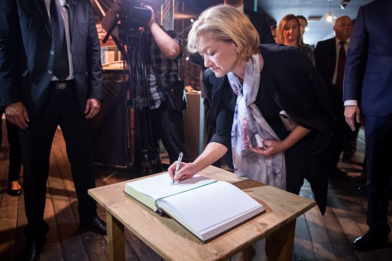Ministerka kultúry Ľubica Laššáková počas sprístupnenia novej časti expozície Múzea holokaustu v Seredi vo štvrtom zrekonštruovanom pôvodnom baraku. Sereď, 7. september 2018. Foto: SITA/Diana Černáková