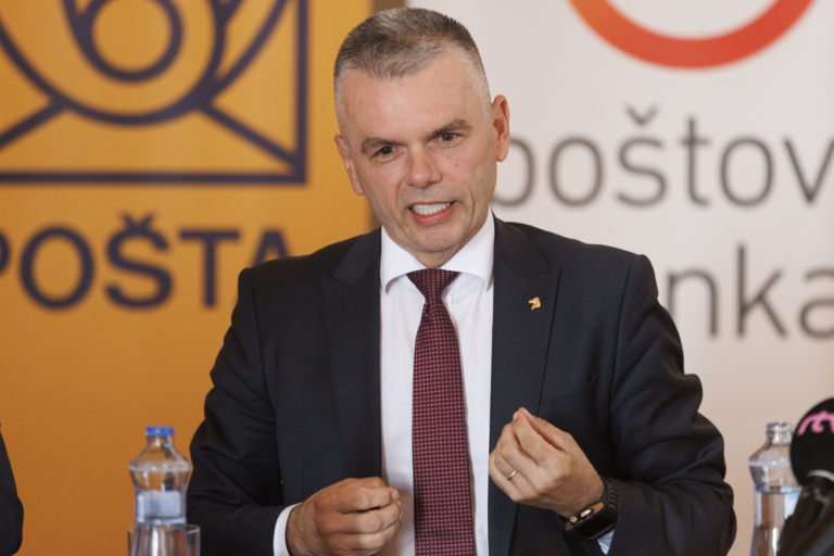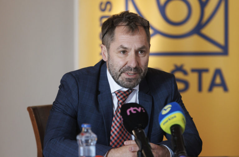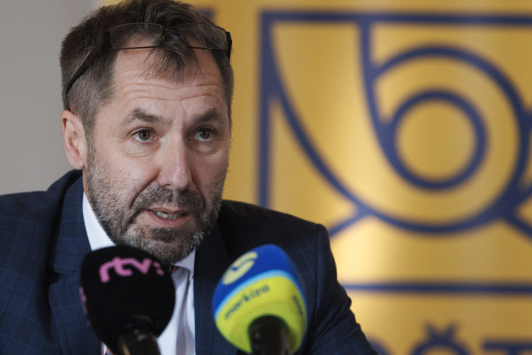 Generálny riaditeľ Slovenskej pošty Ľubomír Mindek počas tlačovej konferencie k otvoreniu 24. ročníka Vianočnej pošty (Napíš list Ježiškovi) spojenej s inauguráciou vianočnej známky a obálky prvého dňa (FDC) v budove Slovenskej pošty v Bratislave. Bratislava, 14. november 2022. Foto: SITA/Branislav Bibel