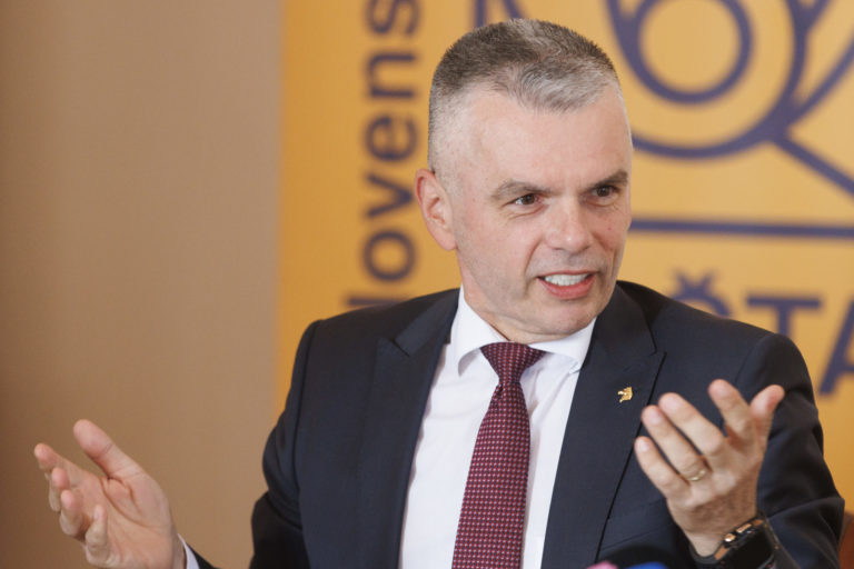 Zľava: Štátny tajomník MDV SR Jaroslav Kmeť a riaditeľka kancelárie štátneho tajomníka Ministerstva dopravy a výstavby (MDV) SR Irena Kyrinovičová Foto: archívne, SITA/Branislav Bibel