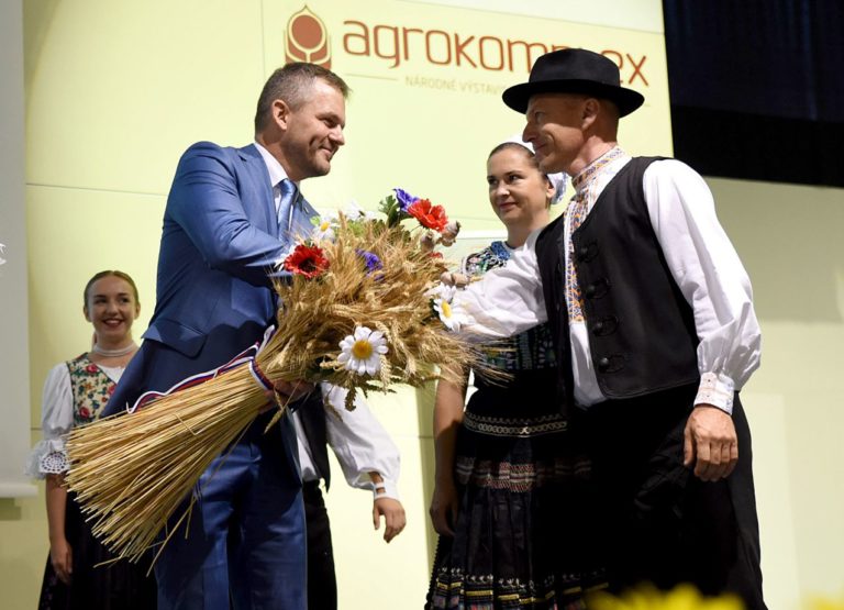 Predseda vlády Peter Pellegrini (vľavo) počas otvorenia 13. ročníka Národnej výstavy hospodárskych zvierat a 45. medzinárodnej poľnohospodárskej a potravinárskej výstavy - Agrokomplex. Nitra, 16. august 2018. Foto: SITA/Martin Havran