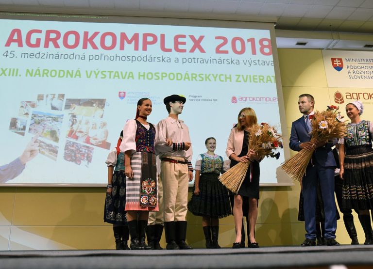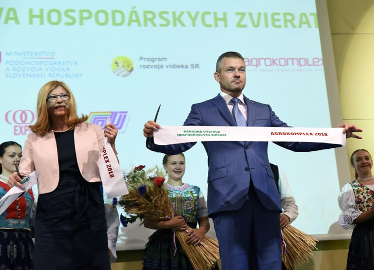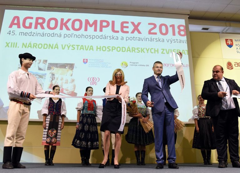 Ministerka pôdohospodárstva a rozvoja vidieka Gabriela Matečná (v strede vľavo) a predseda vlády Peter Pellegrini (v strede vpravo) počas otvorenia 13. ročníka Národnej výstavy hospodárskych zvierat a 45. medzinárodnej poľnohospodárskej a potravinárskej výstavy - Agrokomplex. Nitra, 16. august 2018. Foto: SITA/Martin Havran