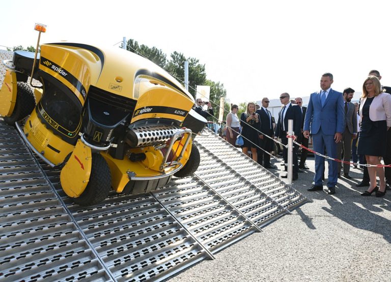 Predseda vlády Peter Pellegrini (v strede v traktore) a ministerka pôdohospodárstva a rozvoja vidieka Gabriela Matečná (vpravo) počas prehliadky 13. ročníka Národnej výstavy hospodárskych zvierat a 45. medzinárodnej poľnohospodárskej a potravinárskej výstavy - Agrokomplex. Nitra, 16. august 2018. Foto: SITA/Martin Havran