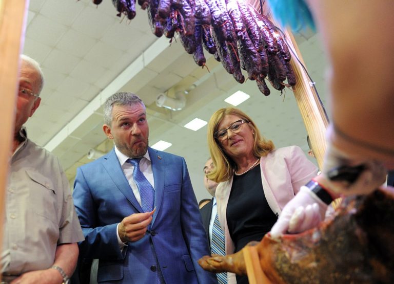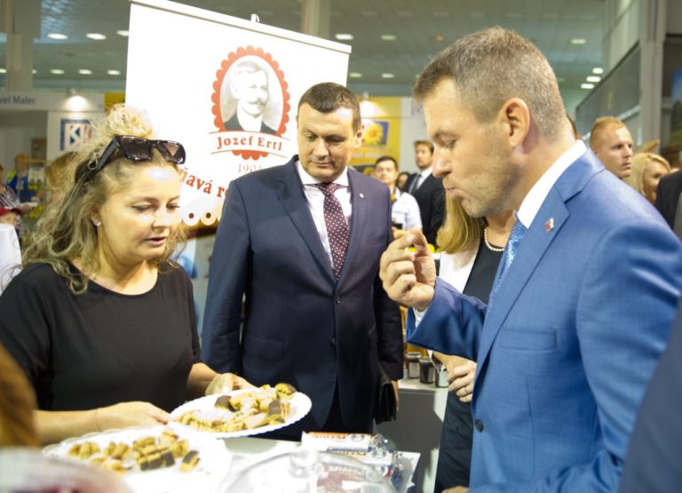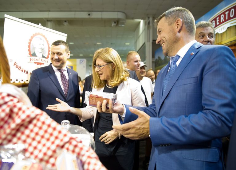 Zľava: Predseda vlády Peter Pellegrini a ministerka pôdohospodárstva a rozvoja vidieka Gabriela Matečná počas ochutnávky slovenských produktov v rámci prehliadky 13. ročníka Národnej výstavy hospodárskych zvierat a 45. medzinárodnej poľnohospodárskej a potravinárskej výstavy - Agrokomplex. Nitra, 16. august 2018. Foto: SITA/Martin Havran