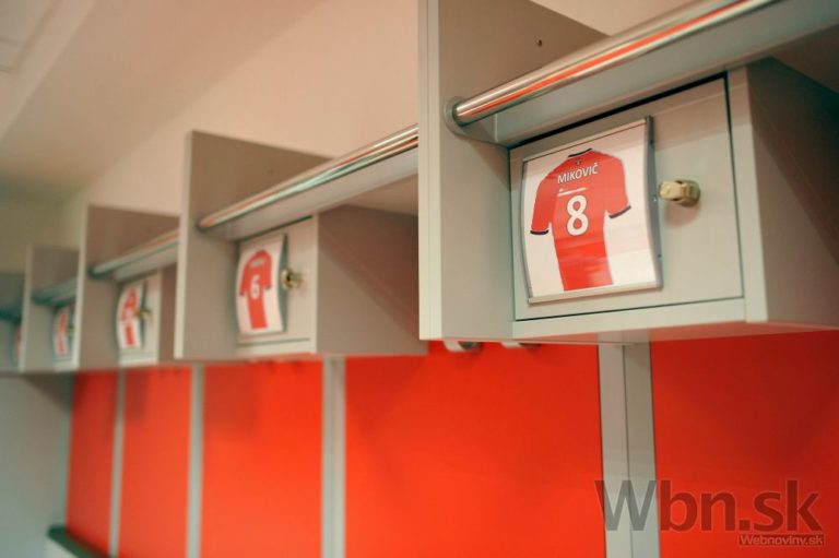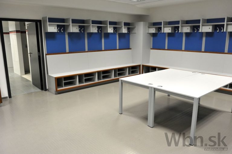 Pohľad do šatne domáceho mužstva s menovkami hráčov počas otvorenie City Arény v Trnave. Trnava, 21. august 2015. Foto: SITA/Ivan Kopčáni