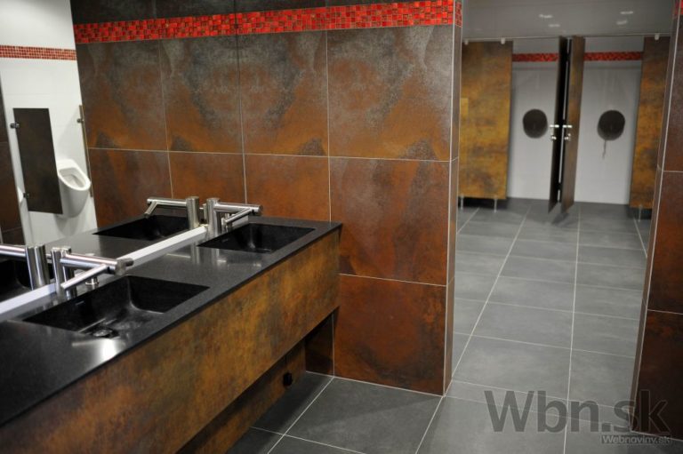 Pohľad do toaliet vo VIP zóne počas otvorenie City Arény v Trnave. Trnava, 21. august 2015. Foto: SITA/Ivan Kopčáni