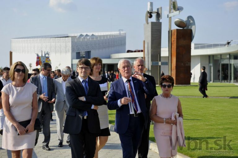 Minister kultúry Marek Maďarič (v strede) počas slávnostného otvorenia dostavby múzea moderného umenia Danubiana Meulensteen Art Museum. Bratislava, 5. september 2014. Foto: SITA/Ján Slovák