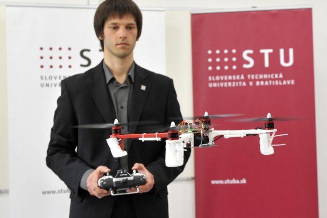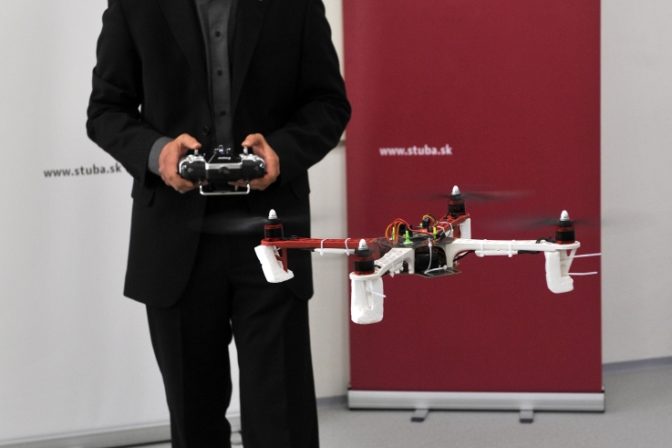 Účastník podujatia Tomáš Fico predvádza svoju quadrokoptéru počas otvorenia Národného centra robotiky spojeného s ukážkami robotov a robotických technológií. Bratislava, 15. apríl 2014. Foto: SITA/Ján Slovák