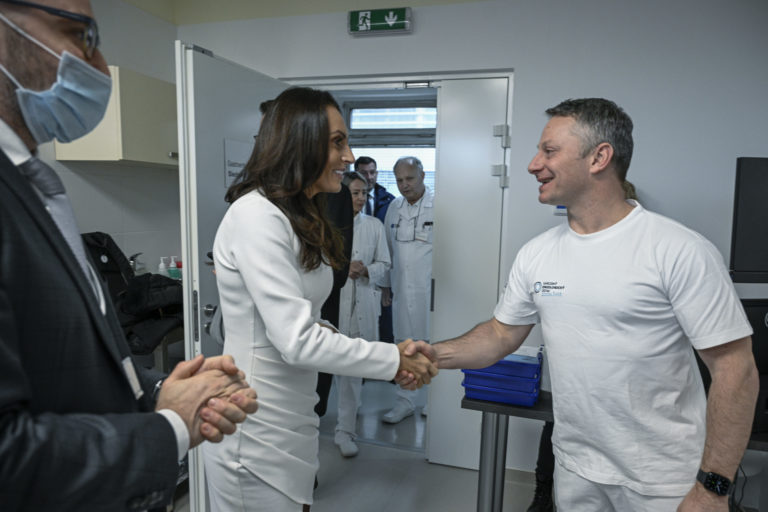 Zľava: Ministerka zdravotníctva Zuzana Dolinková a generálny riaditeľ NOÚ Tomáš Alscher počas otvorenia nového komplexného endoskopického „ERCP“ pracoviska pre diagnostiku a liečbu ochorení pankreasu a žlčových ciest v Národnom onkologickom ústave (NOÚ) v Bratislave. Bratislava, 9. január 2024. Foto: SITA/Milan Illík