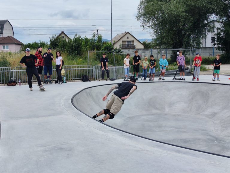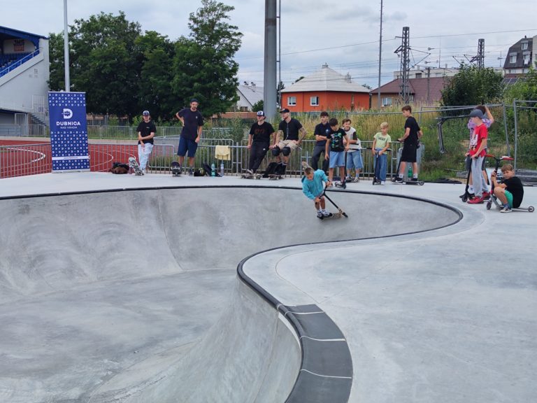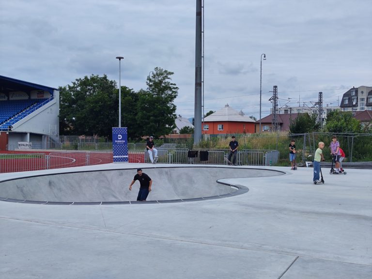 Nový skatepark v športovom areáli na Ulici Športovcov v Dubnici nad Váhom v rámci prvej etapy výstavby z troch. Druhá etapa skateparku by sa mala začať budovať ešte tento rok. Dubnica nad Váhom, 3. júl 2024. Foto: SITA/Laura Krošláková