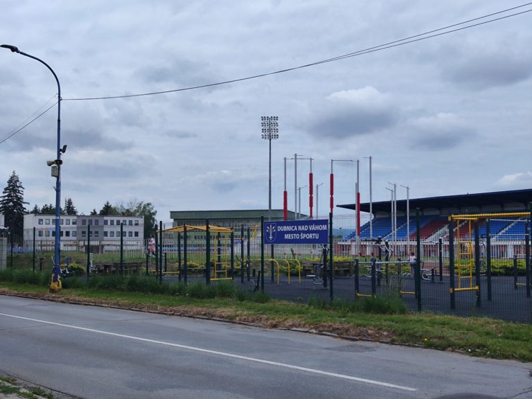Športový areál na Ulici Športovcov v Dubnici nad Váhom, v ktorom mesto vybudovalo nový skatepark v rámci jeho prvej etapy výstavby z troch. Druhá etapa skateparku by sa mala začať budovať ešte tento rok. Dubnica nad Váhom, 3. júl 2024. Foto: SITA/Laura Krošláková