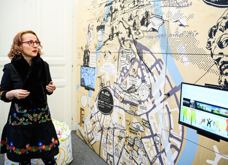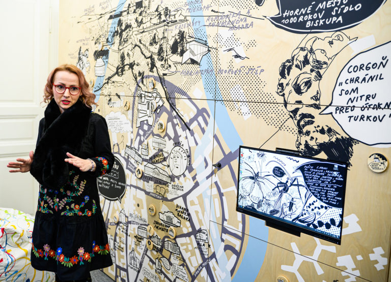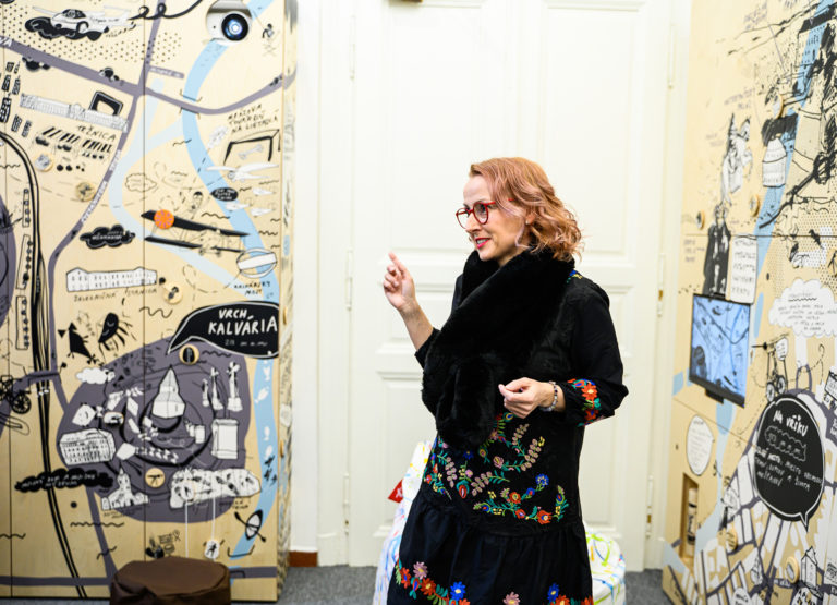 Vedúca TIC Nitra Mariana Záturová počas otvorenia novovybudovanej interaktívnej a oddychovej zóny TICadlovo, ktorú vytvorilo Turistické informačné centrum (TIC) v Nitre za takmer 30-tisíc eur. Nitra, 17. február 2023. Foto: SITA/Martin Havran.
