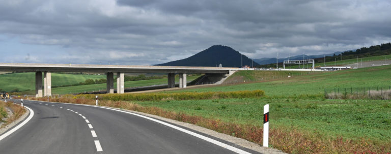 Pohľad na nový úsek rýchlostnej cesty R4 Prešov- severný obchvat I. etapa, pod Šarišským hradom, ktorý dnes slávnostné otvorili. Prešov 25. september 2023. Foto: SITA/Viktor Zamborský