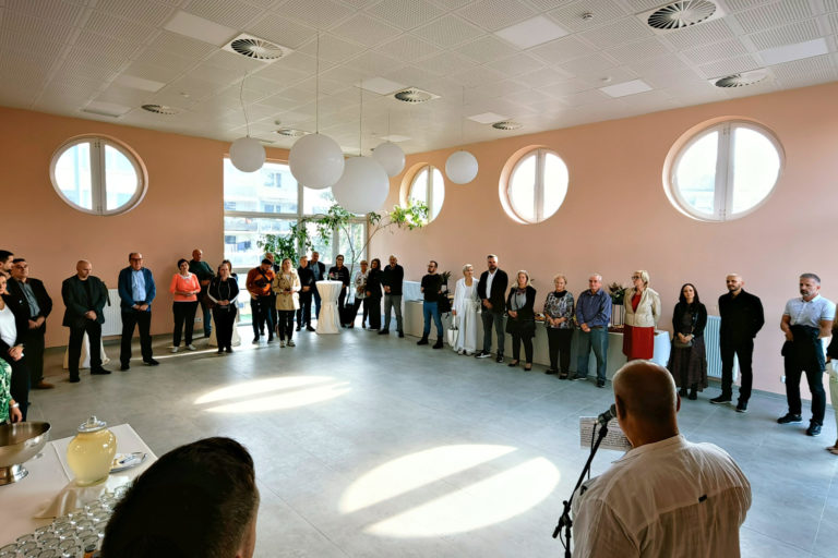 Účastníci počas slávnostného otvorenia Senior centra Tulská v Banskej Bystrici. Banská Bystrica, 11. október 2022. Foto: SITA/Peter Rusko