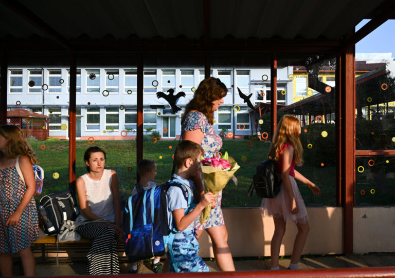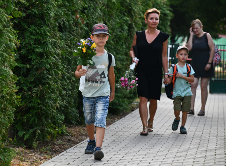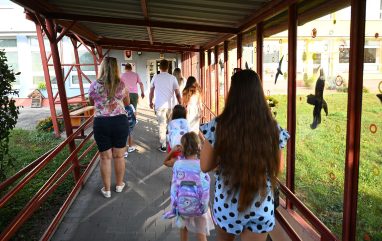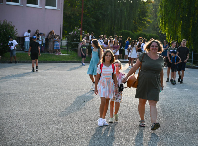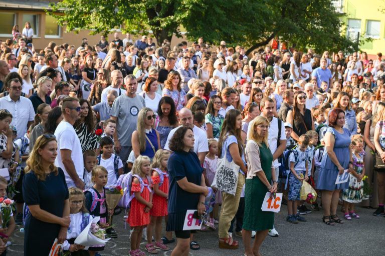 Príchod žiakov na Základnú školu v Starej Tureja počas začatia školského roka 2024/2025. Stará Turá, 2. september 2024. Foto: SITA/Martin Medňanský