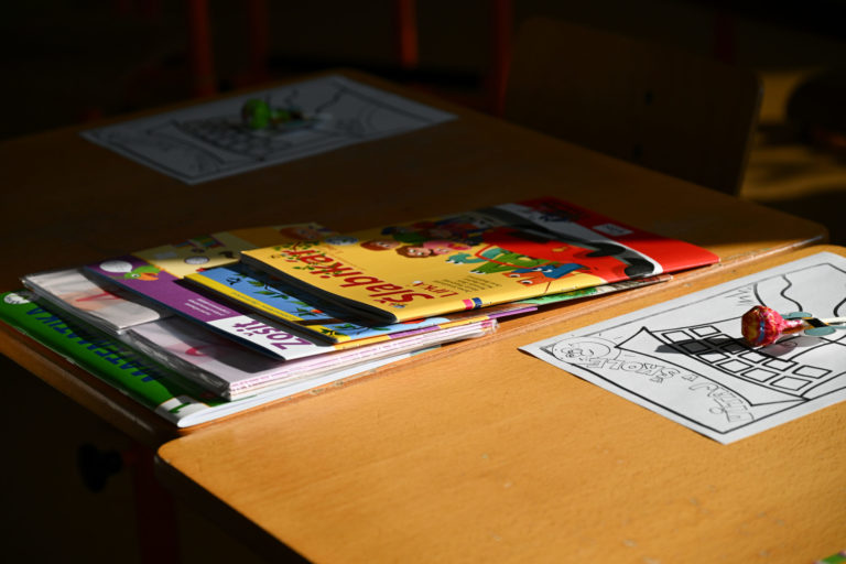 Učebnice v triede 1.D na Základnej škole v Starej Turej počas prvého školského dňa v školskom roku 2024/2025. Stará Turá, 2. september 2024. Foto: SITA/Martin Medňanský
