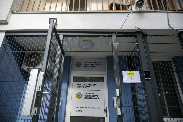Vchod do budovy novootvorenej stanice mestskej polície na Okresnom veliteľstve polície Bratislava II. Bratislava, 13. október 2023. Foto: SITA/Milan Illík