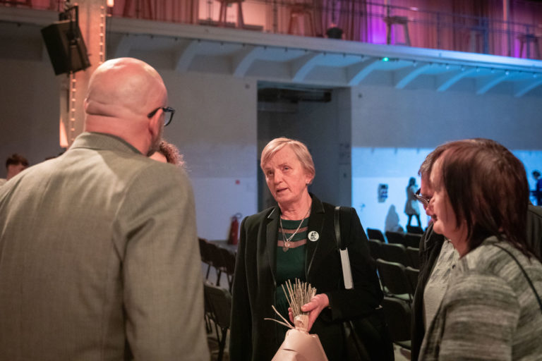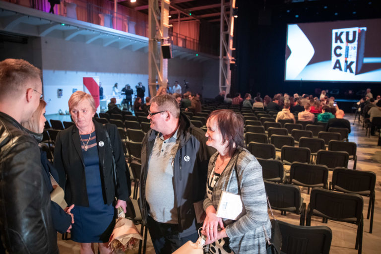Sprava: Rodičia Jána Kuciaka Jozef a Jana a mama Martiny Kušnírovej Zlatica Kušnírová počas oficiálneho otvorenia „Týždňa Jána a Martiny“ – päť rokov od vraždy Jána Kuciaka a Martiny Kušnírovej v Starej Tržnici v Bratislave. Bratislava, 20. február 2023. Foto: SITA/Diana Černáková