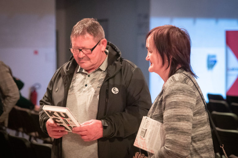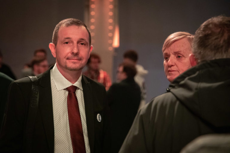Rodičia Jána Kuciaka, zľava: Jozef a Jana počas oficiálneho otvorenia „Týždňa Jána a Martiny“ – päť rokov od vraždy Jána Kuciaka a Martiny Kušnírovej v Starej Tržnici v Bratislave. Bratislava, 20. február 2023. Foto: SITA/Diana Černáková