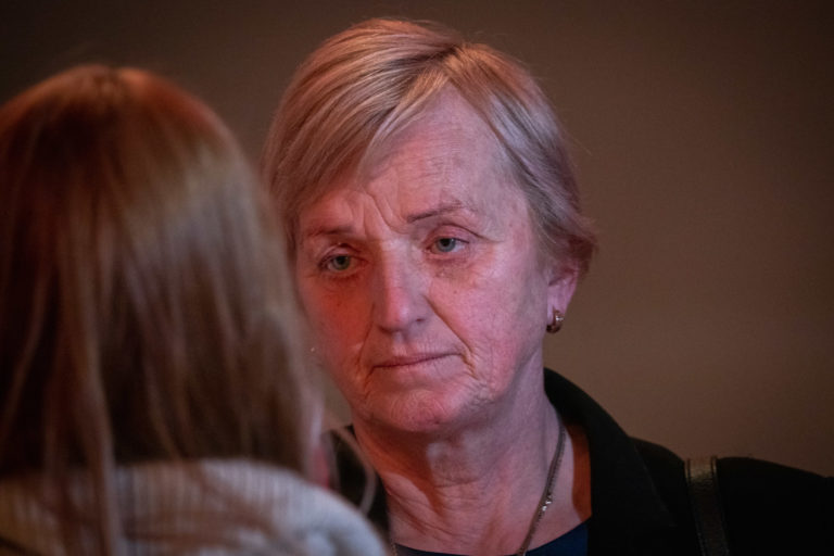 Mama Martiny Kušnírovej Zlatica Kušnírová (vpravo) počas oficiálneho otvorenia „Týždňa Jána a Martiny“ – päť rokov od vraždy Jána Kuciaka a Martiny Kušnírovej v Starej Tržnici v Bratislave. Bratislava, 20. február 2023. Foto: SITA/Diana Černáková