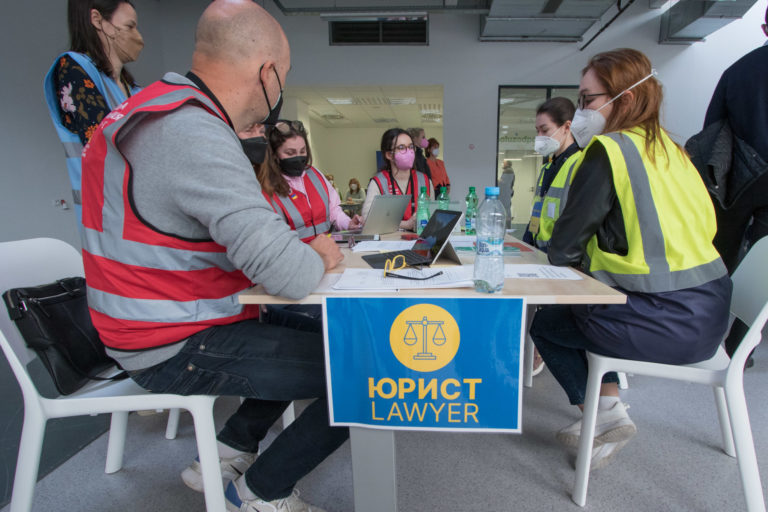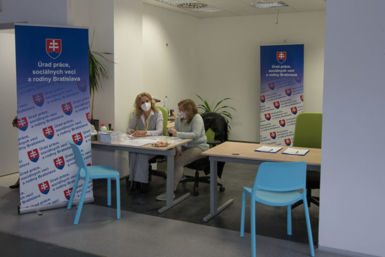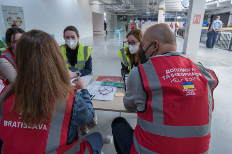 Priestory novootvoreného veľkokapacitného Asistenčného centra pomoci (ACP) pre ľudí z Ukrajiny v bývalej autobusovej stanici na Bottovej ulici v Bratislave. Bratislava, 28. marec 2022. Foto: SITA/¼udovít Vaniher Foto: SITA/Ľudovít Vaniher