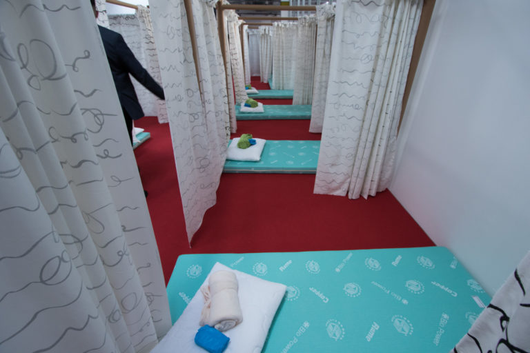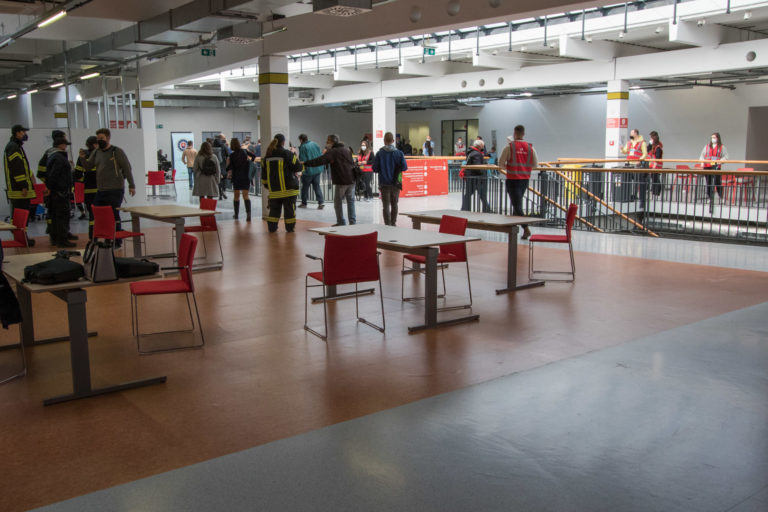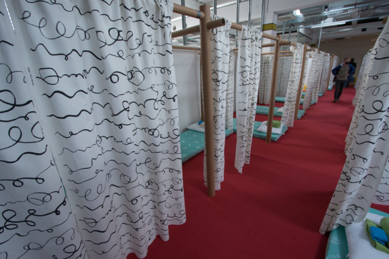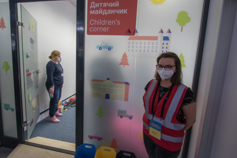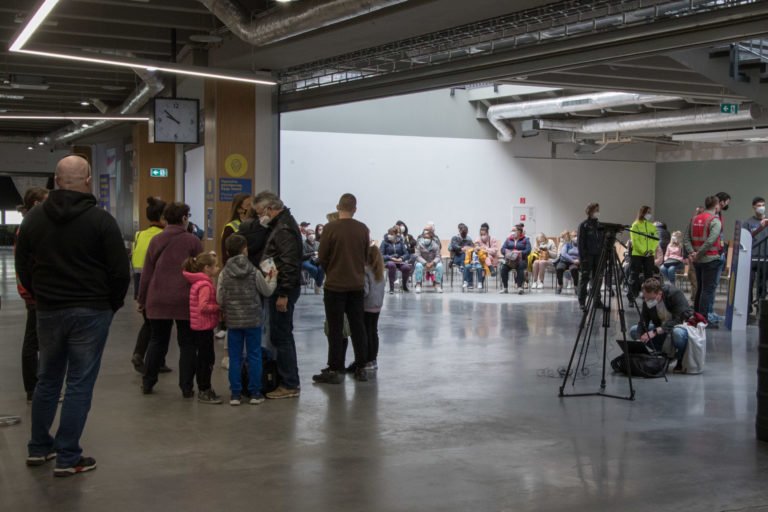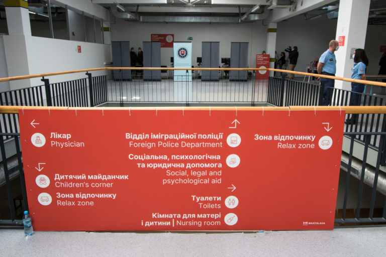 Priestory novootvoreného veľkokapacitného Asistenčného centra pomoci (ACP) pre ľudí z Ukrajiny v bývalej autobusovej stanici na Bottovej ulici v Bratislave. Bratislava, 28. marec 2022. Foto: SITA/Ľudovít Vaniher