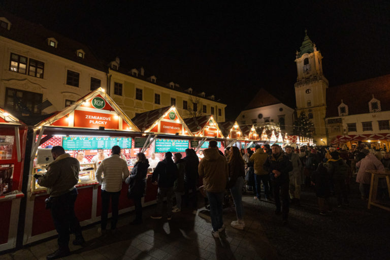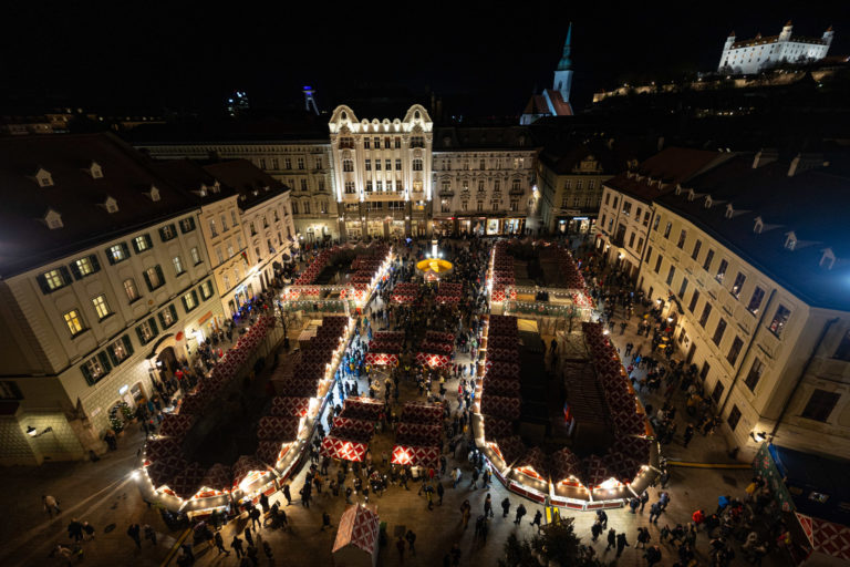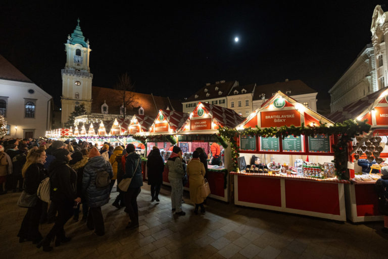 Atmosféra počas otvorenia vianočných trhov na bratislavskom Hlavnom námestí. Bratislava, 24. november 2023. Foto: SITA/Jana Birošová